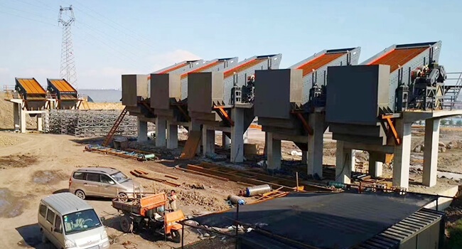 Гранитная дробильная установка включает в себя щековую дробилку Euro, многоцилиндровую гидравлическую конусную дробилку и круговой вибрационный грохот с разбавленным маслом, с производительностью 800 т/ч, который может производить 4 типа конечных материалов.