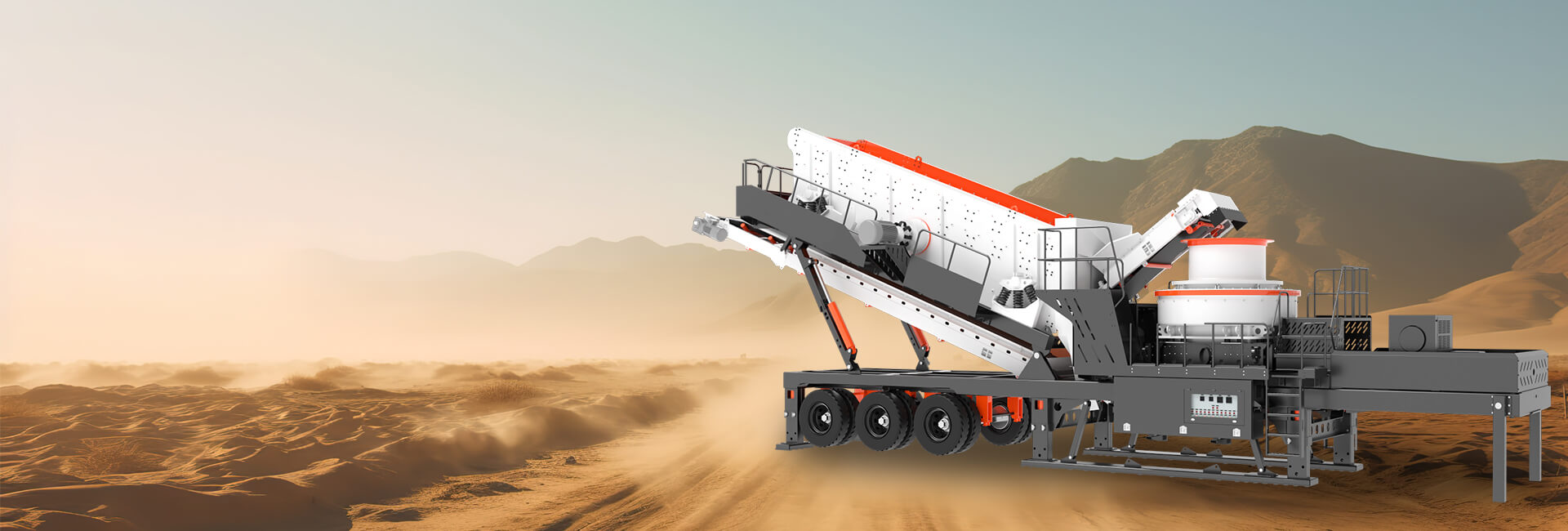 Мобильная пескодробилка объединяет функции подачи, грохочения, дробления и производства песка.